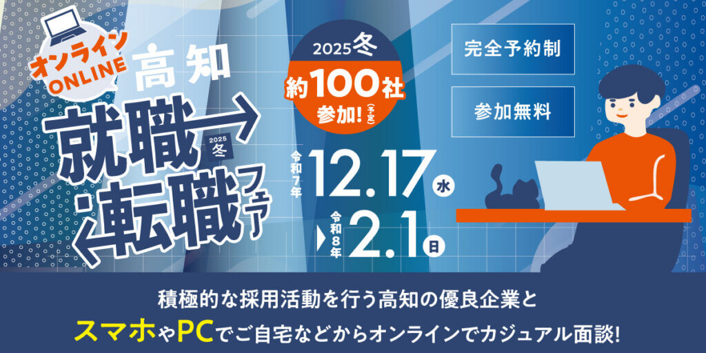 高知の優良企業とオンラインでカジュアル面談!「オンライン高知就職・転職フェア2025 冬」に出展いたします。